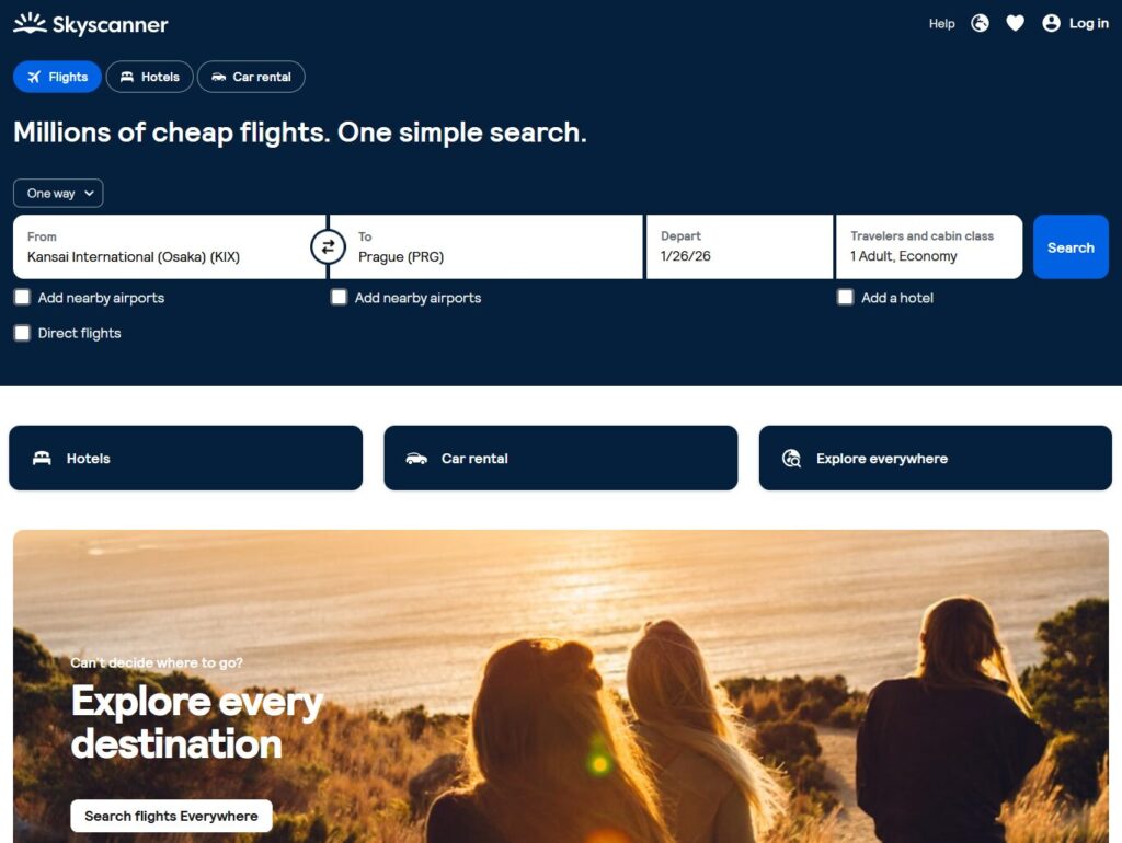 一応の合計は約55万円程度です。どうでしょう。3週間のアメリカからヨーロッパを巡る旅費と考えれば、想像よりも安いのではないでしょうか。Skyscannerというサイトを利用すると安い航空券を探すことができます。